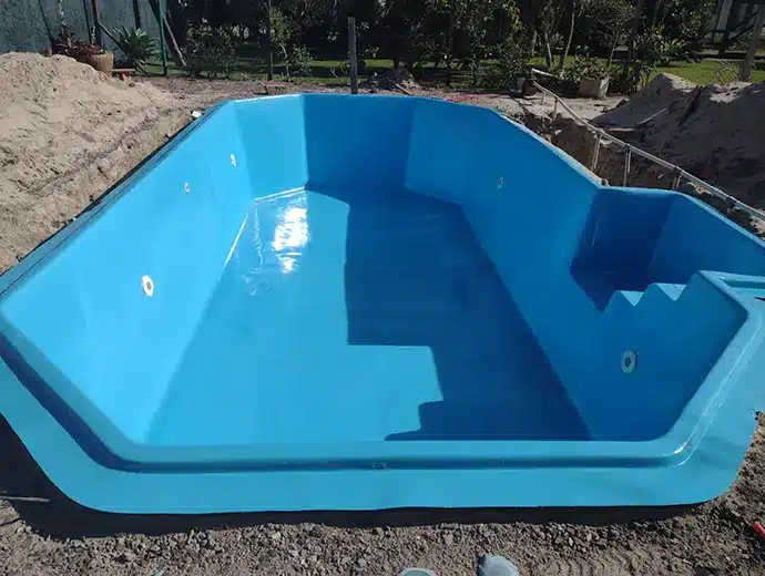 A coloração azulada das piscinas, não é uma tinta qualquer, trata-se de uma camada chamada de Gel-coat. Depois de aplicado ao molde, ficará incorporado as camadas estruturais de fibra de vidro. Com o passar do tempo e a ação dos raios solares, esta camada sofre um considerável desgaste, comprometendo toda a piscina. Por este motivo, podemos afirmar a importância de efetuar-se uma revitalização onde, entre outros procedimentos, aplica-se uma nova camada de um composito de tinta especial para piscinas.